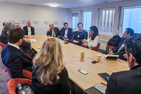 <p>Los ministros de Economía, Carlos Cuerpo, y de Transformación Digital, Óscar López, pidieron a los dirigentes del Ibex presentes en Davo...